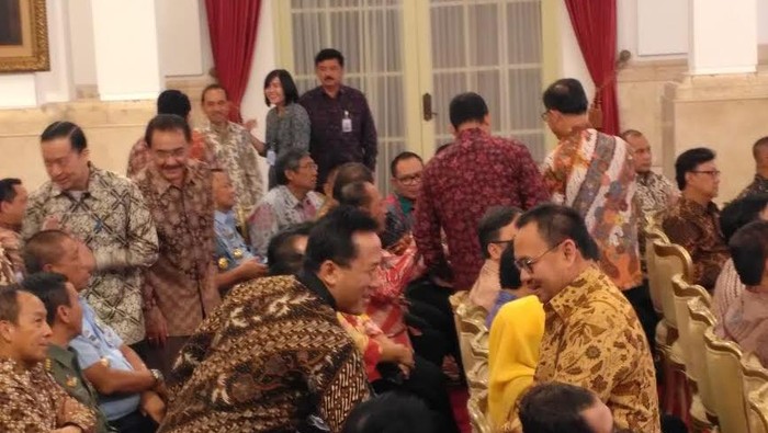 Peristiwa itu berlangsung sebelum acara Penyampaian Laporan Hasil Pemeriksaan Atas Laporan Keuangan Pemerintah Pusat (LHP LKPP) Tahun 2015 oleh BPK di Istana Negara, Jalan Veteran, Jakarta, Senin (6/6/2016).