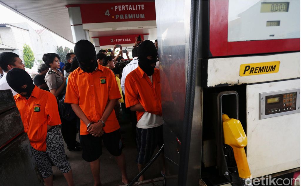 Adi menambahkan, pihaknya telah menangkap 5 pelaku yang terdiri dari 3 pengelola dan 2 karyawan pada 2 Juni 2016. Tersangka SE bertugas menjalankan operasional dan pembeli alat, AGR bertugas mengurus izin ke Pertamina dan pembeli alat tambahan, D bertugas mengatur manajemen karyawan SPBU dan membeli alat pengendali takaran, W bertugas mengawasi karyawan dan mendapatkan upah tambahan serta J bertugas mengawasi karyawan dengan mendapat keuntungan dari margin BBM.