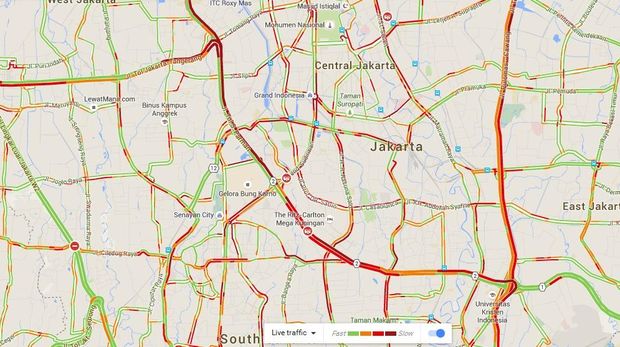 Lalu lintas Ibu Kota dan sekitarnya pada 7 Juni 2016 pukul 16.18 WIB (Dok. Google Maps) |