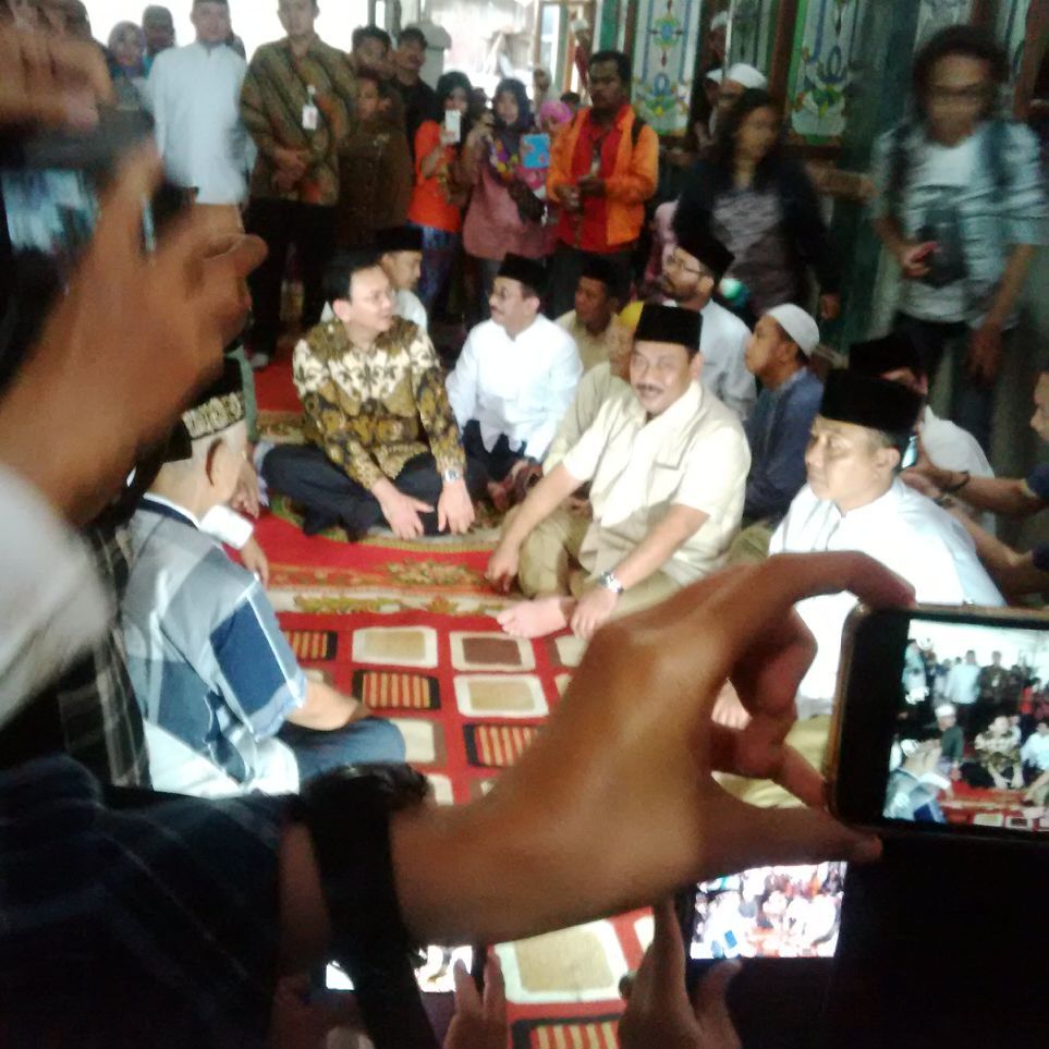 Ahok duduk bersila di tempat buka puasa (Rini F/detikcom)