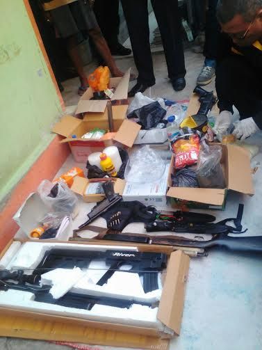 "Ada bom dan senpi yang ditemukan," ujar Kapolsek Mulyosari Kompol Bagus Dwi Rusianto kepada wartawan di Lebak Timur 3D, Rabu (8/6/2016).