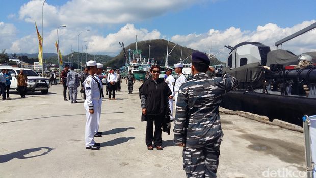 Menteri Kelautan dan Perikanan Susi sebelum naik KRI Untung Suropati (Heri/detikcom) |