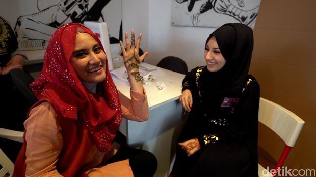 Belajar seni lukis kulit dengan henna/ Tim Jazirah Islam Trans7 |