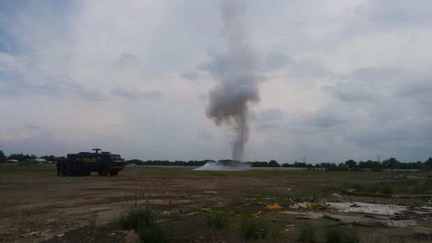 Bumm! Ledakan yang terdengar sangat keras yang membuat batu dan tanah di sekitarnya bercipratan dan terangkat ke atas. Asap putih pun terlihat setelah bom meledak. Setiap satu bom meledak, satu personel gegana yang menggunakan body armor mendekat ke lokasi untuk memastikan bahwa bom yang diledakkan benar-benar telah hancur.