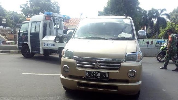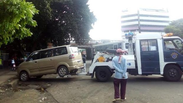 "Mobil diderek karena di situ ada rambu letter S coret," ujar petugas Dishubtrans Jaktim, Indra Gunawan.