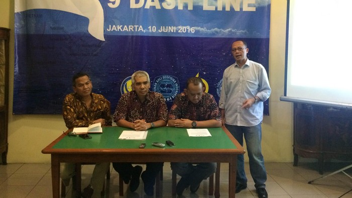 "Pertama, kami mendukung sikap pemerintah yang mempertanyakan klaim Tiongkok atas 9 dash line. Kedua, kami sangat keberatan atas munculnya beberapa peta terkait wilayah kedaulatan NKRI yang digunakan sebagai materi paparan oleh beberapa pihak, termasuk oleh badan-badan pemerintahan yang di dalamnya masih memuat 9 dash line karena hal itu bertentangan dengan sikap pemerintah yang mempertanyakan klaim Tiongkok tersebut," ujar Ketua Umum IAGI Sukmandaru Prihatmoko, di Tebet, Jakarta Selatan, Jumat (10/6/2016).