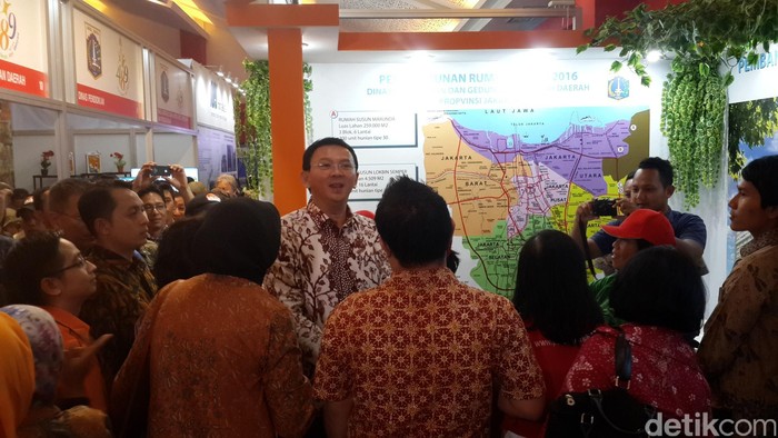 Usai mengantar Mendagri Tjahjo Kumolo yang hadir saat pembukaan ke mobilnya, Ahok berjalan kaki menuju hall C tempat anjungan Pemprov DKI. Pengunjung menyemut mengerumbungi Ahok. Tak sedikit yang meminta foto bareng atau selfie dengan orang nomor satu di Jakarta itu.