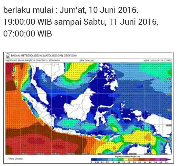 Dalam situs BMKG yang dikutip detikcom, Sabtu (11/6/2016), tertulis bahwa perairan selatan Jawa hingga Lombok masih cukup kuat (Rough) dengan ketinggian berkisar antara 2,5-4 meter. Dari peta yang didapat melalui BMKG juga terlihat sekitar perairan Jawa hingga Lombok warna kemungkinan gelombang tinggi masih pekat, yakni berwarna merah hati dan oranye.