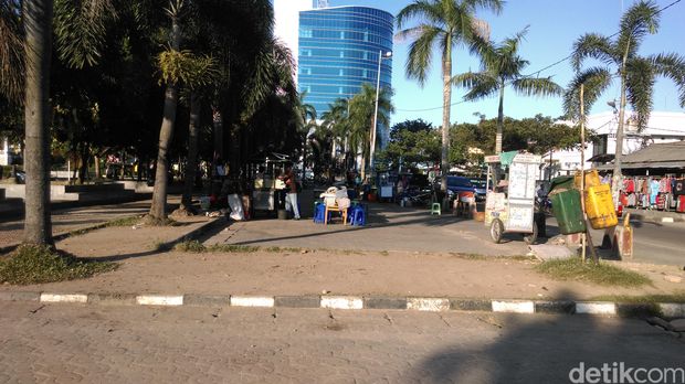 Sementara itu di sisi selatan Lapangan Merdeka sudah terlihat banyak orang berjualan makanan takjil. Jajanan pasar, pempek, kelapa muda, semangka dan makanan-makanan berbuka lainnya sudah banyak dijual.