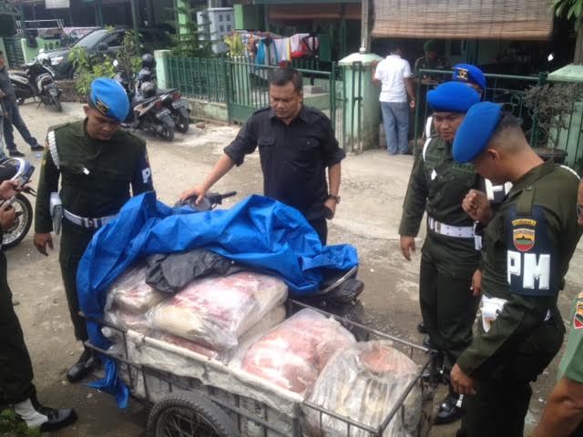 "Kita tangkap dua kurir tadi pagi yang membawa daging tersebut dengan becak motor. Kita lakukan pengembangan ternyata kita temukan lagi daging di salah satu rumah di Asrama TNI dengan jumlah 8 ton," sambungnya.