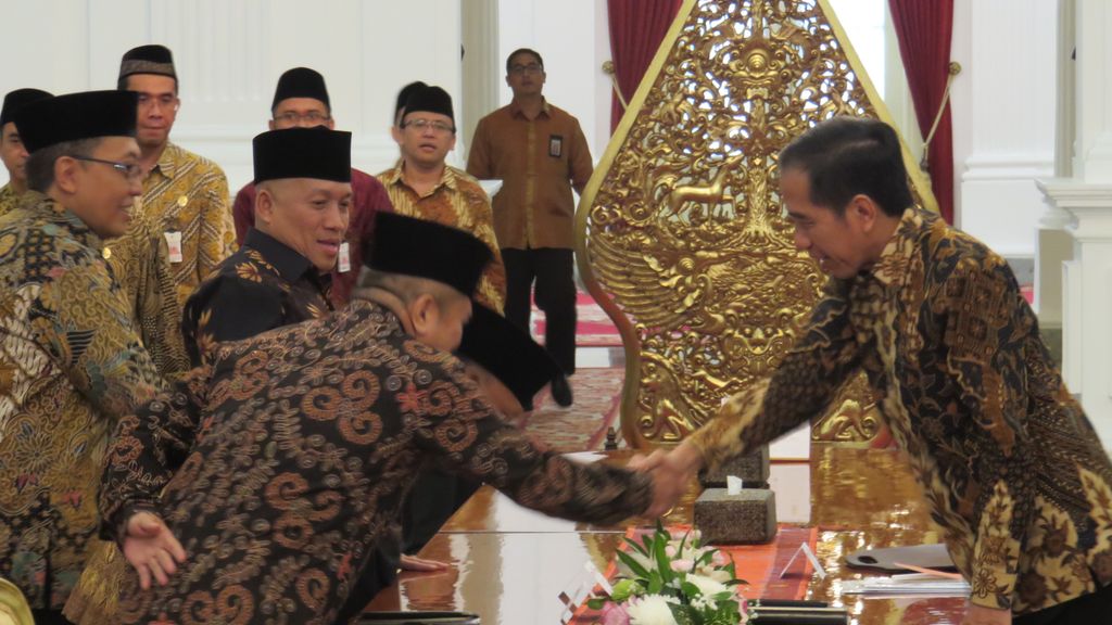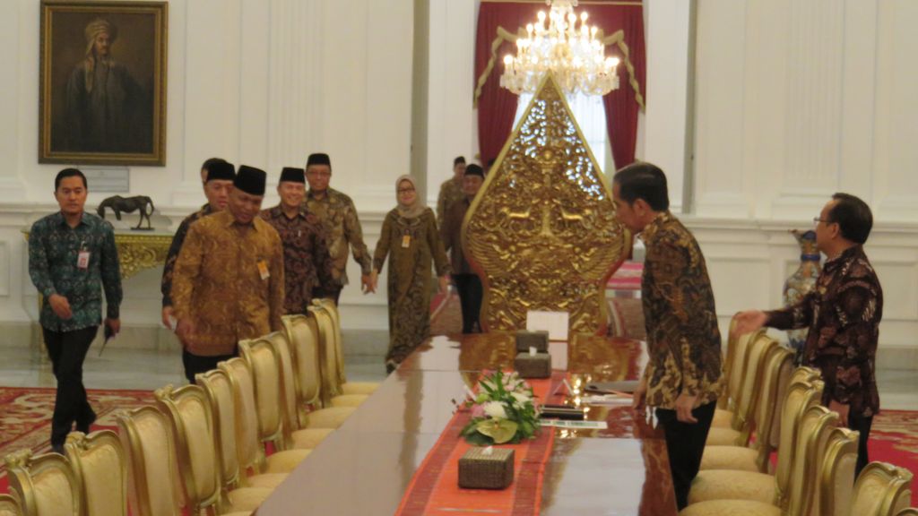 Jakarta - Komisioner Komisi Pengawas Haji Indonesia (KPHI) menemui Presiden Joko Widodo (Jokowi) di Istana. KPHI melaporkan berbagai hal, termasuk soal honor mereka yang belum diterima sejak pertama bertugas.