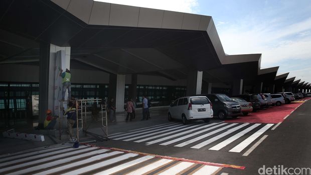 Selain itu, para pekerja terus menyelesaikan bagian-bagian yang belum rampung. Salah satu yang terlihat di lobi kedatangan, para pekerja melepaskan plastik-plastik yang masih menempel di dinding. Terlihat juga di aspal jalan depan lobi sudah dicat untuk zebra cross dan marka jalan.