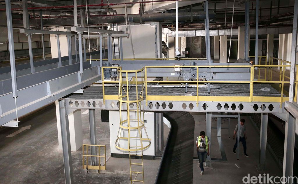 Salah satu alur ban berjalan di sistem bagasi automatis di T3 Ultimate Bandara Cengkareng (Foto: Hasan Alhabsy/detikcom) |