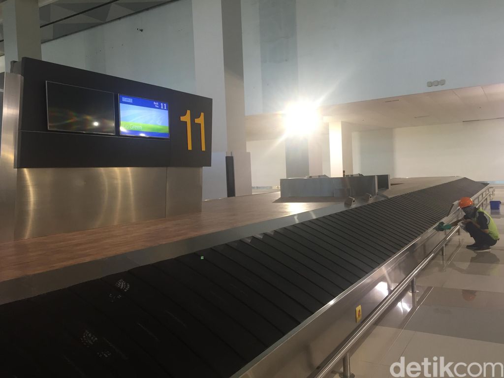 Salah satu alur ban berjalan di sistem bagasi automatis (Foto: Hasan Alhabsy/detikcom)