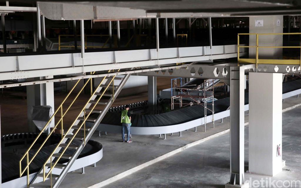 Salah satu alur ban berjalan di sistem bagasi automatis di T3 Ultimate Bandara Cengkareng (Foto: Hasan Alhabsy/detikcom)