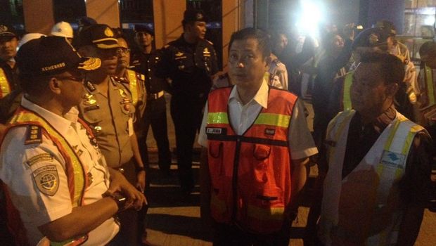 Setelah melihat-lihat area dalam pelabuhan Jonan langsung menuju kapal yang akan mengangkut penumpang ke Surabaya. Jonan langsung mengomentari bobot kapal tersebut yang dinilai kelebihan muatan.
