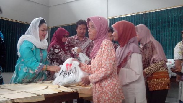 Titiek membagiak 5 ribu paket sembako di Yogyakarta (Foto: Bagus Kurniawan/detikcom) |