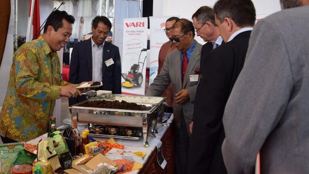Contoh-contoh produk unggulan Indonesia ditampilkan antara lain makanan olahan, minyak sawit, kopi, teh, tekstil dan batik, kerajinan tangan, hiasan berbasis kayu, suku cadang kendaraan bermotor, serta kekayaan tujuan wisata Indonesia.