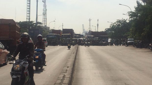 Jl RE Martadinata yang tadinya macet total kini berangsur bisa dilalui. Petugas masih melakukan contraflow, yang diberlakukan di lajur yang mengarah ke Tanjung Priok. Lajur sebaliknya ditutup.