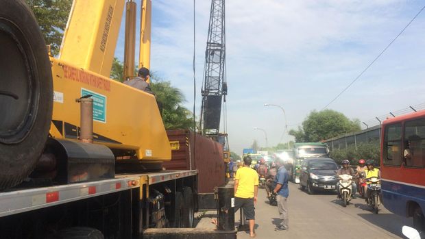 Pantauan pukul 09.20 WIB, Selasa (21/6/2016), alat berat berhasil mengangkat kontainer yang membentang di Jl RE Martadinata. Kontainer tersebut lantas diletakkan di pinggir jalan, untuk nantinya dievakuasi total.