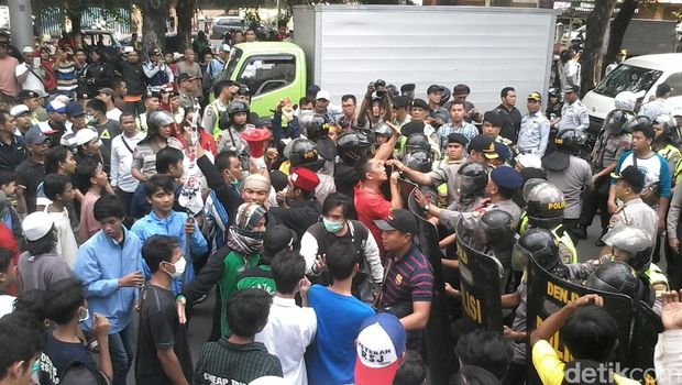 Kini para pengunjuk rasa terlihat memenuhi bahu Jalan Bandengan Utara. Personel Dinas Perhubungan, Satpol PP, hingga polisi berjaga-jaga, termasuk di dalam RPTRA. Lalu lintas Jalan Bandengan Utara ke arah Kota Tua menjadi tersendat.