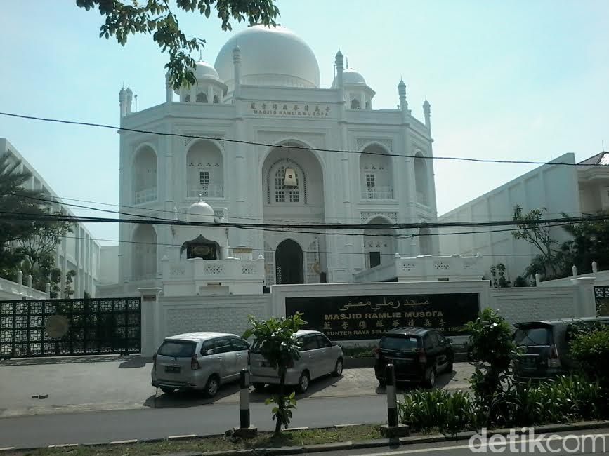 Yang menarik memang tulisan China di masjid ini. Tulisan itu menjadi ciri khas, karena masjid ini dibangun seorang mualaf, pengusaha keturunan Tionghoa. Masjid ini dibangun pada 2011 dan diresmikan pada Mei 2016 kemarin. Dari masjid ini juga bisa melihat pemandangan Danau Sunter.
