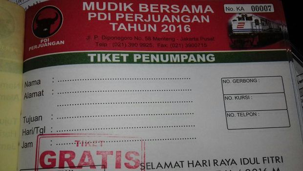 "Gotong royong mudik lebaran menggunakan moda transportasi kereta api dan bus. Pemberangkatan akan dilakukan pada Sabtu 2 Juli 2016 pukul 11.00 WIB dari Stasiun Kereta Api Senin dan pukul 13.00 WIB untuk bus," papar penanggung jawab program yang juga Wakil Sekjen DPP PDIP Bidang Kerakyatan Eriko Sotarduga dalam keterangannya, Sabtu (25/6/2016).