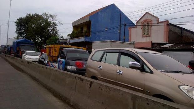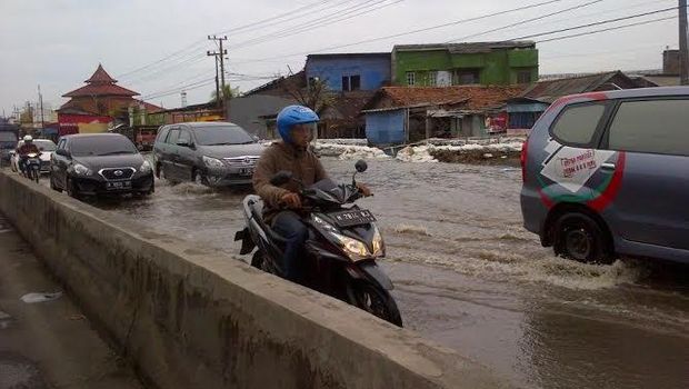 Genangan air mengakibatkan kepadatan kendaraan (Foto: Angling/detikcom) |
