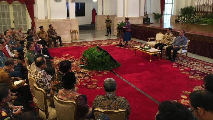 Rapat digelar di Istana Negara, Jakarta, Rabu (29/6/2016). Menteri yang hadir di antaranya Menko Polhukam Luhut Binsar Pandjaitan, Menteri Kelautan dan Perikananan Susi Pudiastuti, Menteri Luar Negeri Retno LP Marsudi, Menteri Hukum dan HAM Yasonna Laoly. Hadir juga Panglima TNI Jenderal Gatot Nurmantyo dan Kapolri Jenderal Pol Badrodin Haiti.