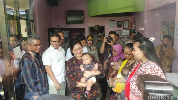 "Sejak kapan vaksin di sini," tanya Menteri Nila pada salah Ibu satu orang tua anak, Kamis (30/6/2016).