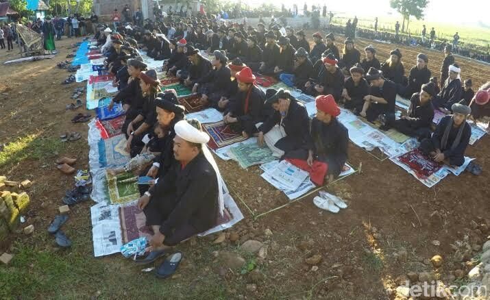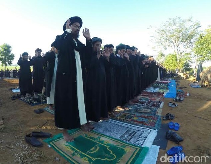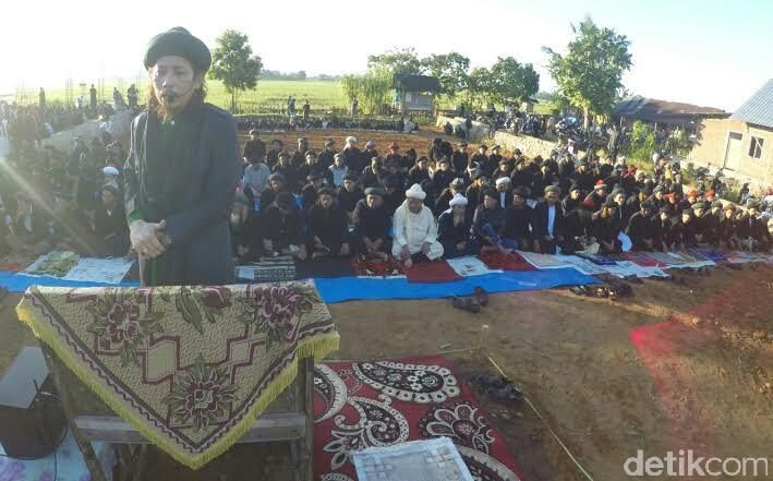 Pimpinan kelompok Jamaah An-Nadzir Ustadz Lukman Andi Bakti bertindak selaku Imam Salat Id sekaligus khatib di tanah lapang tepi sawah perkampungan An-Nadzir.