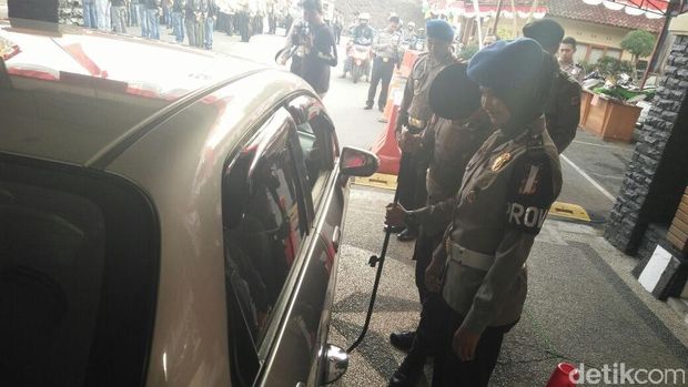 Sejak pagi hingga sore, Selasa (5/7/2016), sejumlah polisi berseragam menahan laju kendaraan roda dua dan empat yan masuk melalui gerbang utama Mapolres Cimahi. Dua polisi bersenjata laras panjang dan dua polisi berbekal cermin deteksi memeriksa bagian bawah serta bagasi mobil.