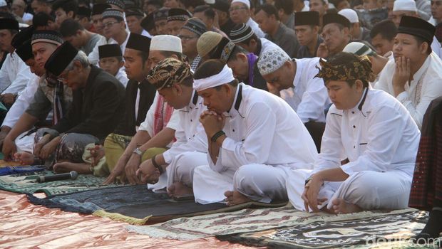 Bupati Dedi Salat Id di Purwakarta (Foto: Tri Ispranoto/detikcom) |