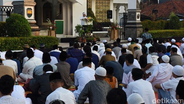 Bupati Dedi Salat Id di Purwakarta (Foto: Tri Ispranoto/detikcom)