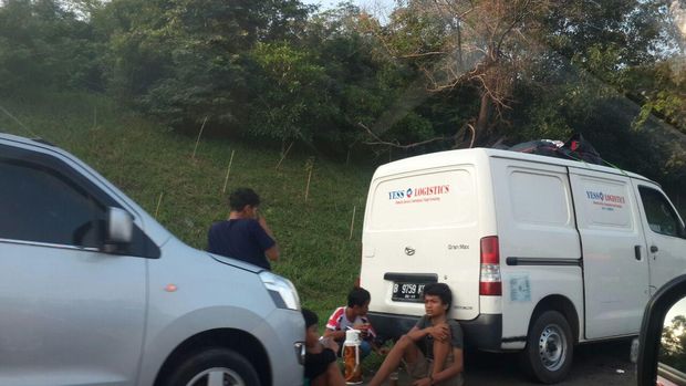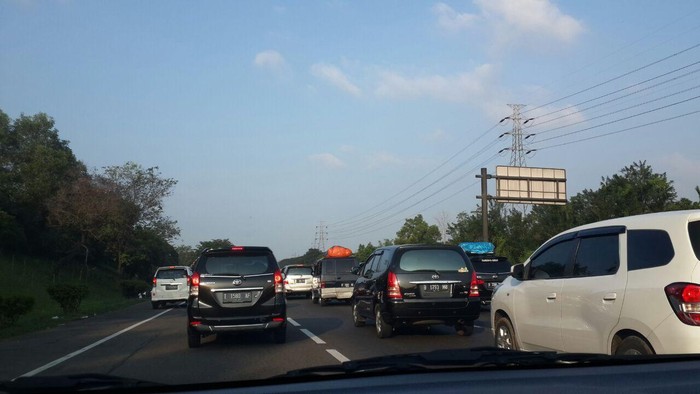 Laju kendaraan tersendat saat masuk ke Tol Cikampek dari pintu gerbang Tol Bekasi. Kendaraan hanya bisa dipacu dengan kecepatan maksimal 20 km/jam, namun sesekali harus berhenti.