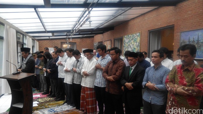 Seperti yang dijalani WNI di Kopenhagen, Denmark. Mereka berbondong-bondong mengikuti salat Id yang diadakan KBRI Kopenhagen di Wisma Duta pada Rabu (6/7/2016).