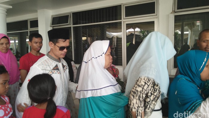 Di antara orang-orang yang pakai kacamata hitam itu ada seorang bernama Yono, memakai peci hitam. Yono (45) bercerita tentang alasannya datang ke acara open house Wapres Jusuf Kalla.