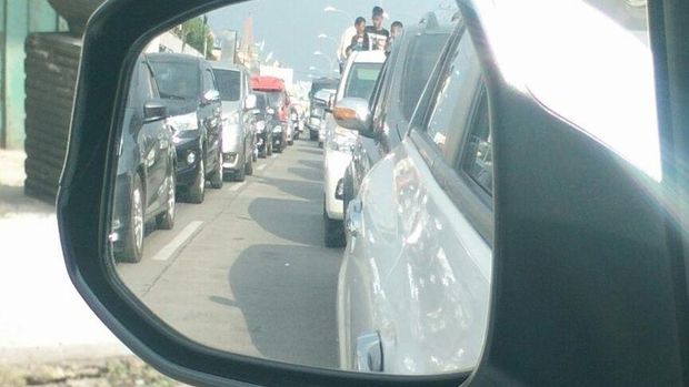Macet karena ada penyempitan jalur di Jl Mayjen Sutoyo |