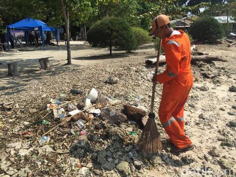 "Ada sampah kiriman ditambah juga orang yang liburan di pulau ini kadang buang sampah sembarangan," ujar Hendra, seorang Petugas PPSU kepada detikcom di Pulau Pari, Kepulauan Seribu, Kamis (7/7/2016).