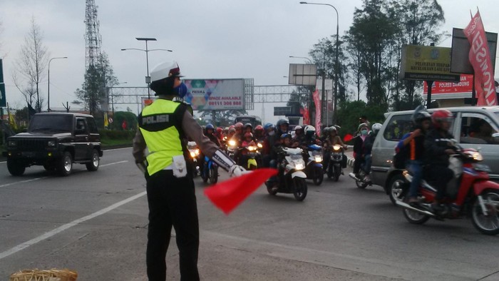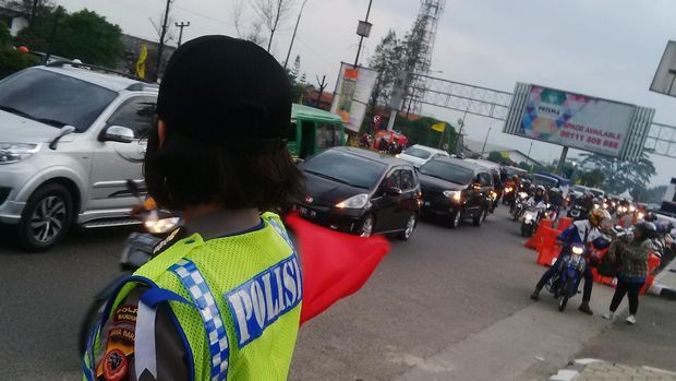 Polisi mengatur arus lalu lintas di perempatan Cileunyi (Foto: Masnurdiansyah/detikcom)