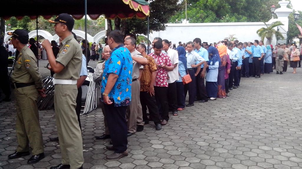 "Kami satu rombongan sebanyak 20 orang mencarter mini bus dari Semin (Gunungkidul). Berangkat pukul 06.00 pagi. Alhamdulillah bisa salaman dengan Ngarso Dalem (Sri Sultan HB X) beserta Ratu Hemas dan Paku Alam," ungkap Sudarmono, warga Semin kepada detik.com.