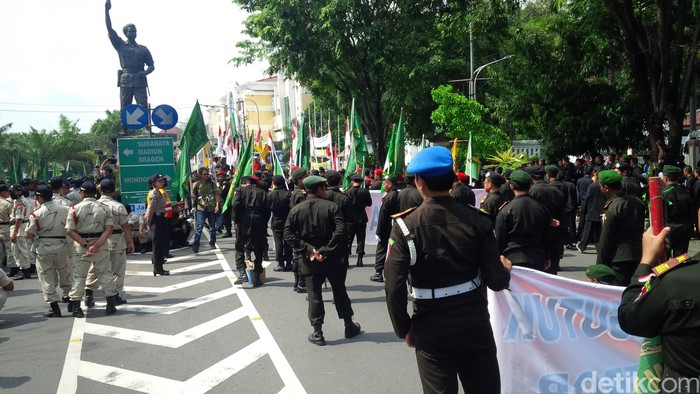 Seribuan orang itu berasal dari organisasi sosial, organisasi keagamaan, perguruan bela diri, hingga pramuka dan pelajar. Mereka sebelumnya berkumpul di Plasa Sriwedari dan selanjutnya berjalan kaki bersama menuju Bundaran Gladag, Senin (11/7/2016).