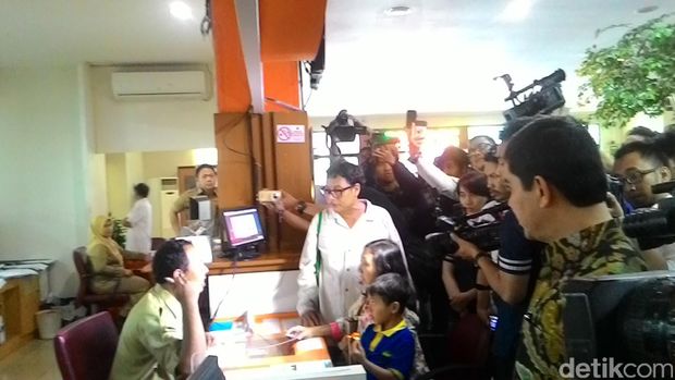 Yuddy pun heran mengapa warga tak bisa membuat KJP di PTSP Wali Kota Jakpus. Yuddy langsung bertanya ke petugas mengapa Hendri tak bisa membuat KJP.