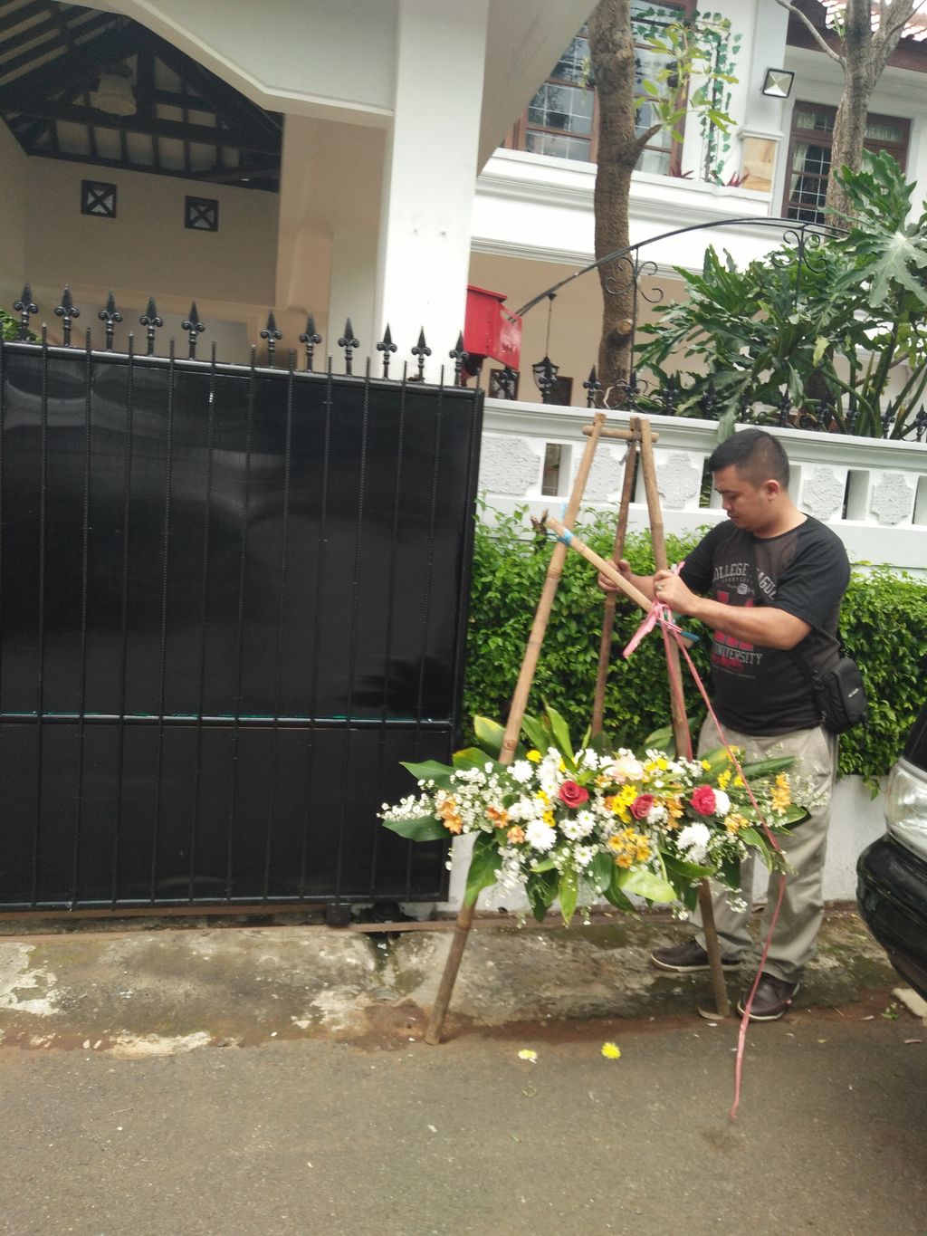 "Sudah lama, hampir satu jam ini mau nganter bunga tapi enggak ada orang. Bel nya juga mati," kata Kurniawan.