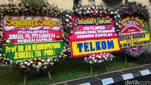 Karangan bunga untuk Tito di Mabes Polri (Foto: Yulida/detikcom) |