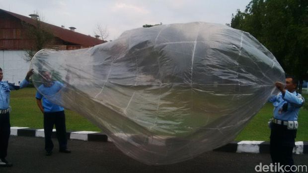 "Ukuran balon, tinggi 4,4 meter, diameter bawah 1 meter, diameter tengah 3 meter," imbuhnya.