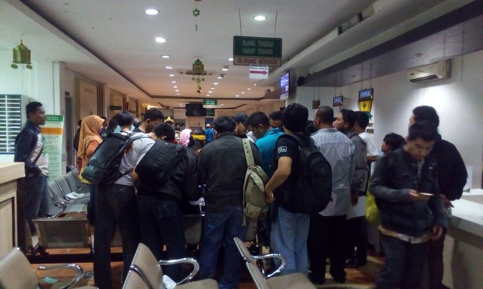 Bertempat di ruang Hospital Service Controller (HSC), para pasien keluar-masuk mendaftar. Terlihat sekitar 3 orang pelayan melayani para pasien.