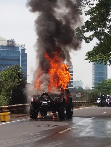 "Ketika saya sedang melintas terjadi kemacetan cukup panjang, pas saya lihat ada kepulan. Ternyata ada mobil kebakar," ungkat Ardika saat berbincang dengan detikcom, Minggu (17/7/2016).