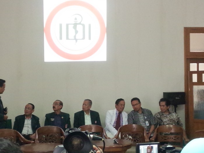 Pernyataan sikap itu dibacakan Ketua Umum IDI Prof Dr Ilham Oetomo Marsis SpOG dalam jumpa pers di kantor PB IDI, Jl Samratulangi 29, Menteng, Jakarta Pusat, Senin (18/7/2016). Ilham didampingi oleh Ketua Umum Persatuan Rumah Sakit Indonesia (Persi) Sri Rachmani, Ketua Umum Asosiasi Rumah Sakit Swasta Indonesia (ARSSI) Sussi Setiawaty dan Ketua Umum Ikatan Dokter Anak Indonesia (IDAI) Aman Bhakti Pulungan.