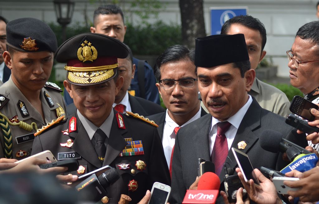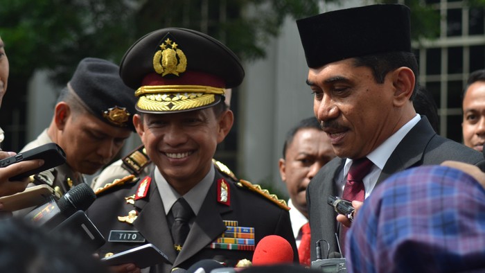 Kapolri Jenderal Tito Karnavian saat diwawancarai bersama Kepala BNPT Komjen Suhardi Alius (Foto: M Iqbal/detikcom) |